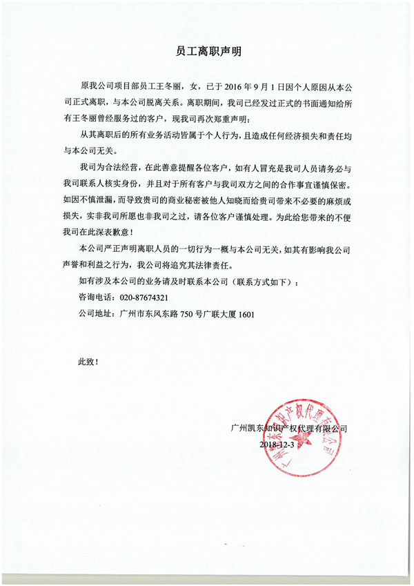 >>新聞資訊>>【公告】關(guān)于員工離職聲明