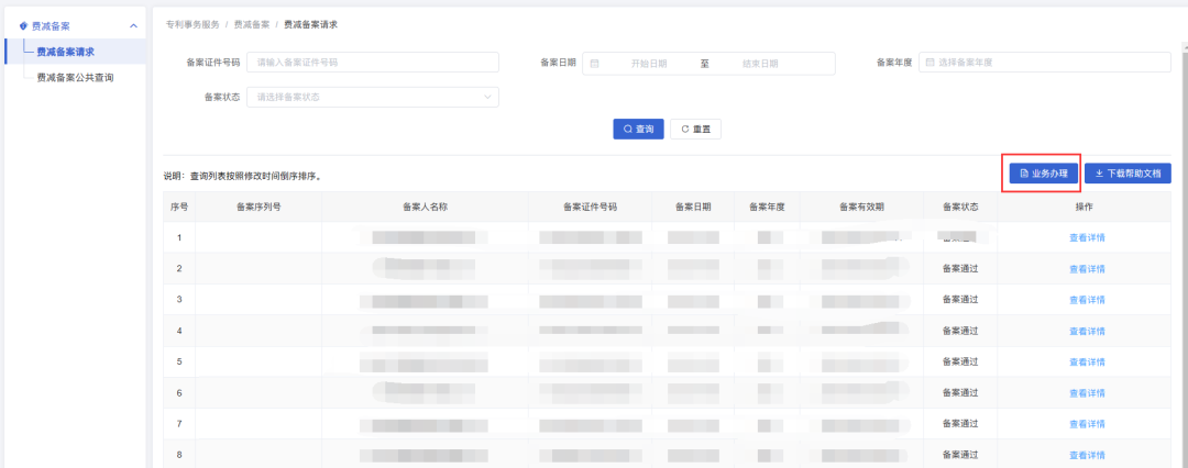 申請(qǐng)人或?qū)@麢?quán)人通過費(fèi)減備案系統(tǒng)在線填寫并提交備案信息,若審核通過,則在一個(gè)自然年有效期內(nèi),該申請(qǐng)人提出專利費(fèi)減請(qǐng)求的,即可按照《專利收費(fèi)減繳辦法》享受相應(yīng)比例的專利費(fèi)用的減繳,無需按照專利申請(qǐng)逐件再次提交專利費(fèi)用減繳證明。提前辦理費(fèi)用備案,早做準(zhǔn)備,這樣不耽誤明年1月份申請(qǐng)文件的提交。