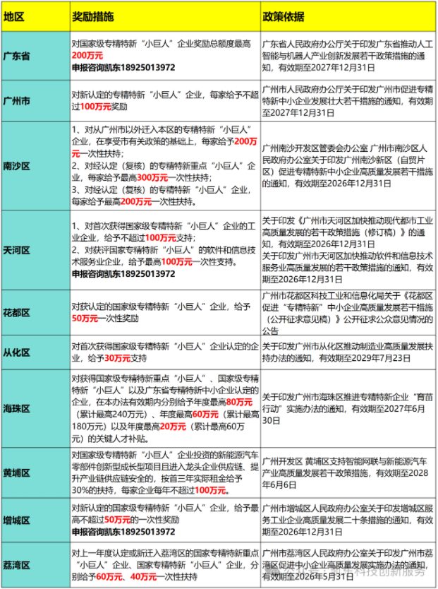 附【廣州市各區(qū)專精特新“小巨人”認定獎勵匯總】?