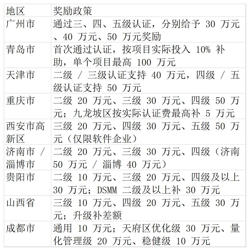 六、各地 DCMM 認證支持政策(部分重點地區(qū))