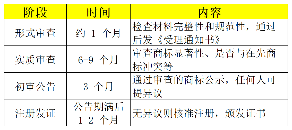 注:2025 年實施《商標注冊申請快速審查辦法》,戰略性新興產業可享 "135 工作制"(1 個月形式審查、3 個月實質審查、5 個月全流程完結)