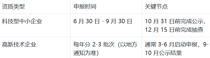 - 初創(chuàng)期企業(yè)(營收<5000 萬、知識產(chǎn)權少):先申報 科技型中小企業(yè) → 積累研發(fā)數(shù)據(jù)和信用記錄 → 2-3 年后沖刺高新技術企業(yè);